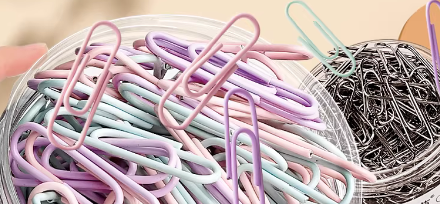 1000枚彩色回形针办公用品曲别针大号文件书签回型针收纳盒文具不锈钢u型固定回纹
